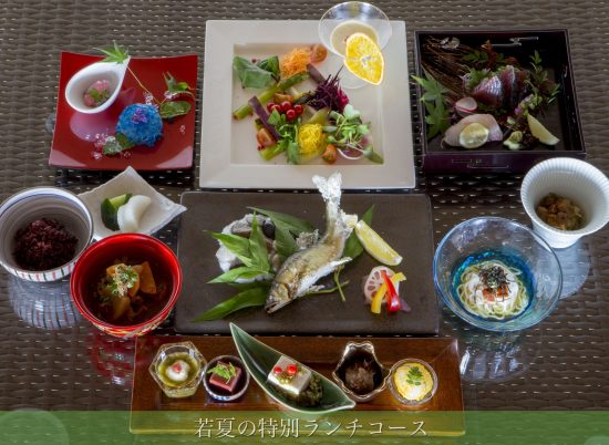 風薫る若夏の頃、早々と梅雨入りした沖縄では、ひと雨ごとに新緑がまぶしく輝き、鳥や虫たちも楽しそうに音楽を奏でています。 百名伽藍では、この季節ならではの『若夏の特別ランチ、ディナーコース』がスタート致しました。 目にも鮮…