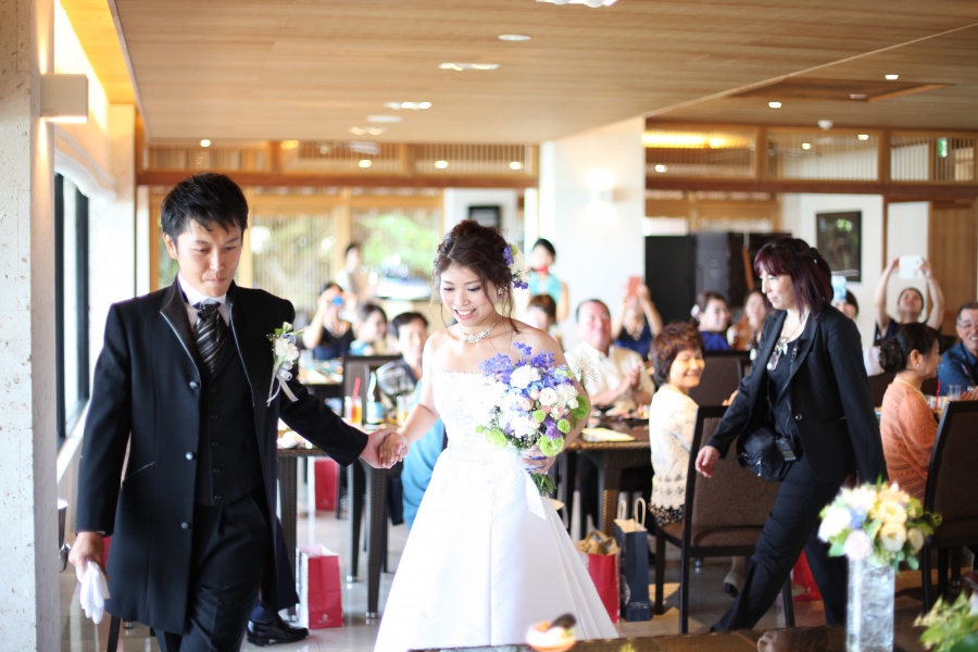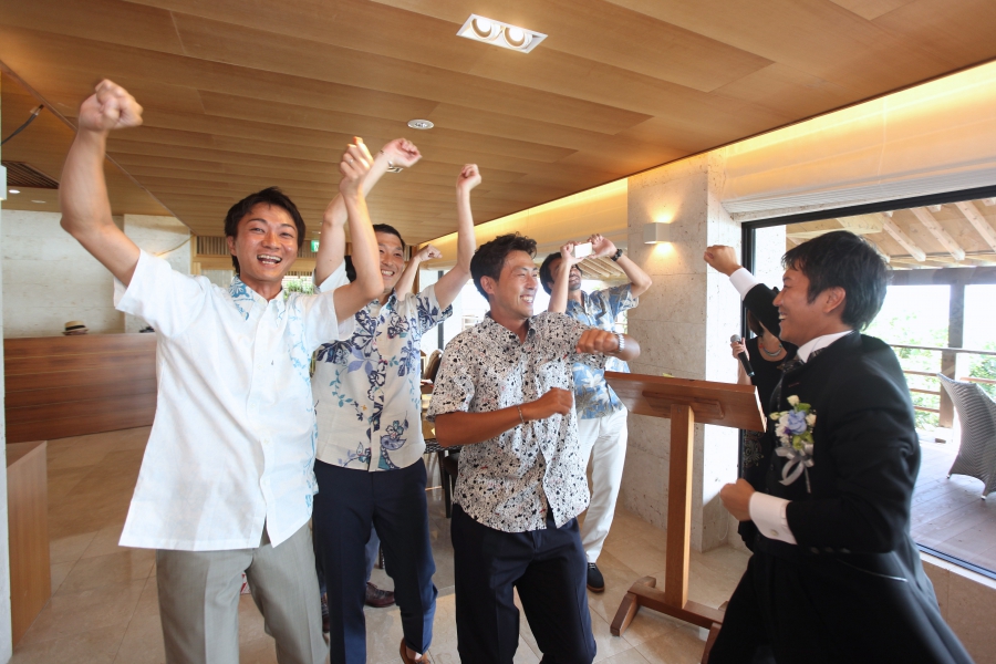 県外に住んでいる私達でしたが、プランナーの村上さんがメール・電話にて丁寧に対応してくれました。県外からのゲストもいらっしやったので、せっかくなら沖縄旅行も兼ねて良い思い出を作ってほしい。という私達の気持ちから、曲や飾り物、演出に沖縄感を組み込みながら、司会の高田さんにも料理から琉球舞踊、カチャーシーについてわかりやすく説明してもらいました。