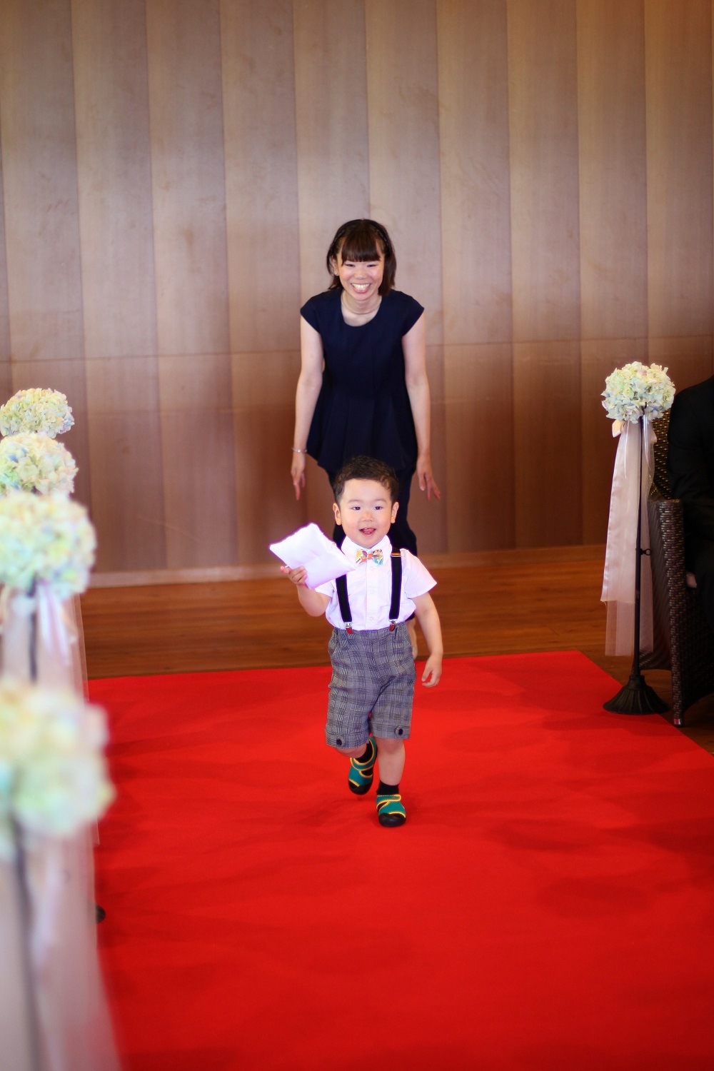 大好きな甥っ子にリングボーイをお願いしました。大切な指輪を届けてくれてありがとう!