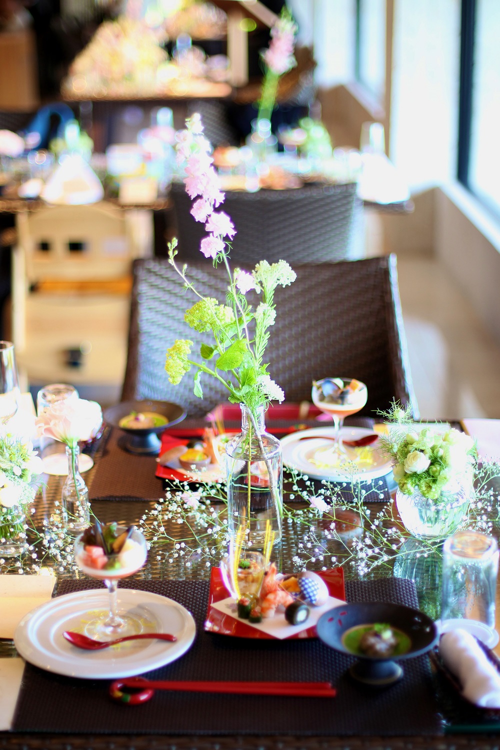 当日は天気に恵まれ青空が広がる中で人前式を行い、披露宴はおいしいお食事をゆっくり楽しんでほしかったので歓談タイムを多く取りました。
