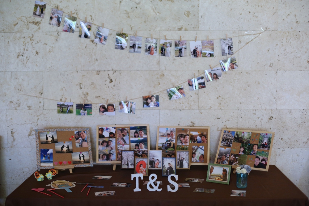 ゲストの皆様に私たち二人の明るく笑顔あふれる雰囲気をお伝えしたくて、ウェルカムスペースと受付を写真いっぱいにしました。