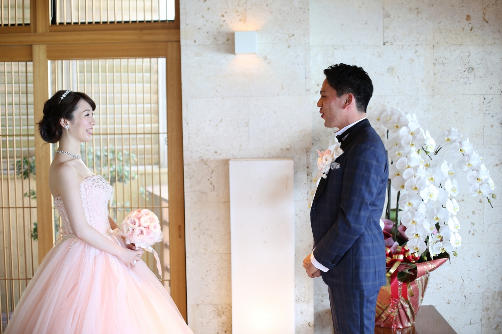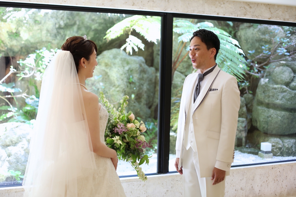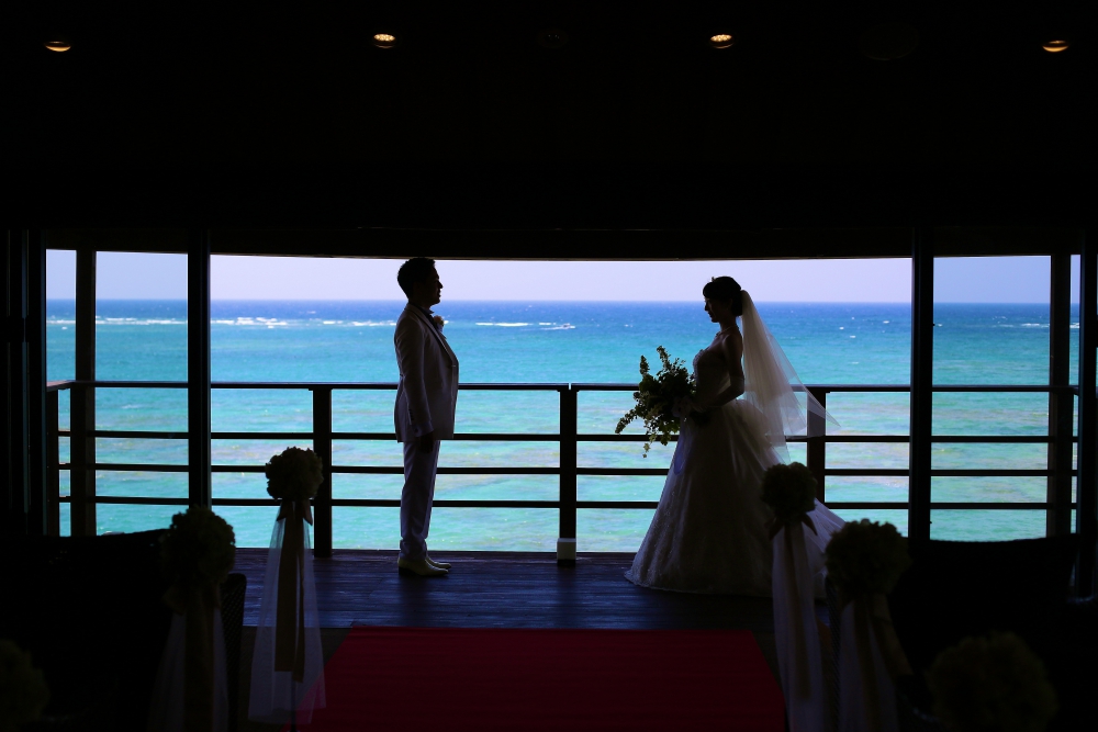 結婚式を東京で行うか、沖縄で行うか悩みながら式場選びをするなかで、沖縄で最後に訪れた式場候補が百名伽藍さんでした。青い海とガジュマルの木、心地よい風など溢れる自然と、ホテル全体の素敵で落ち着いた雰囲気、そしてスタッフさんのお心遣いと優しさに感動し、即決しました。