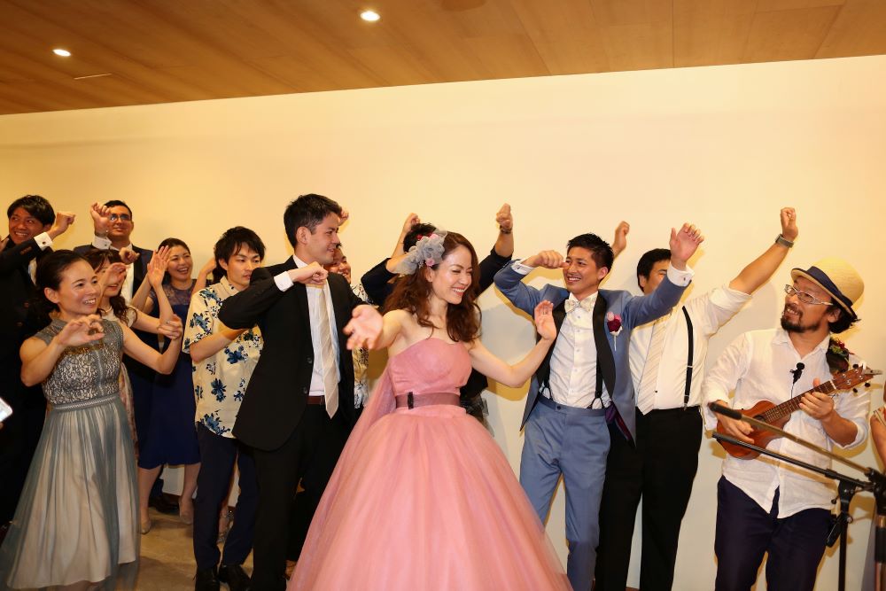 海外ウエディングの様なオシャレな雰囲気も出したくてアーチを作ってもらい、当日は生のウクレレ演奏をお願いしました。