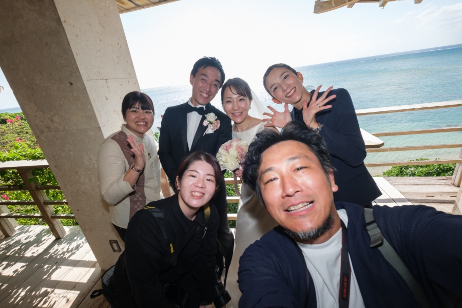 当日はヘアメイク・よださん、カメラマン・石井さん、アシスタントの銘苅さんからも祝福の言葉と確かな腕前で、私たちの特別な時間づくりの後押しをいただきました。