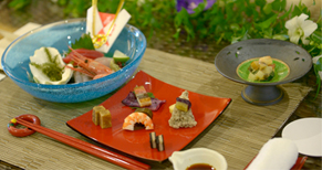 お料理は沖縄らしさを感じる会席料理をリクエスト。 琉球漆器や琉球ガラスの器も素晴らしく、こだわりに溢れていました。