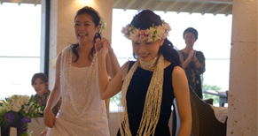 新郎の妹と一緒にフラを。 両家のつながりを感じられる演出を入れたくて、お願いしました。