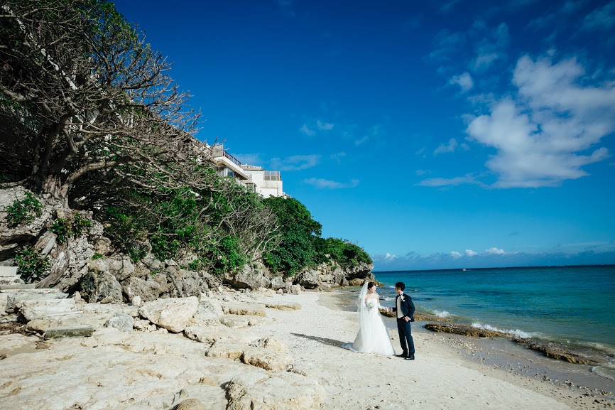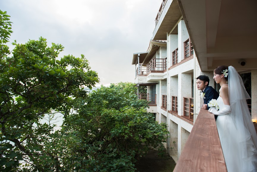 海をバックに人前式。